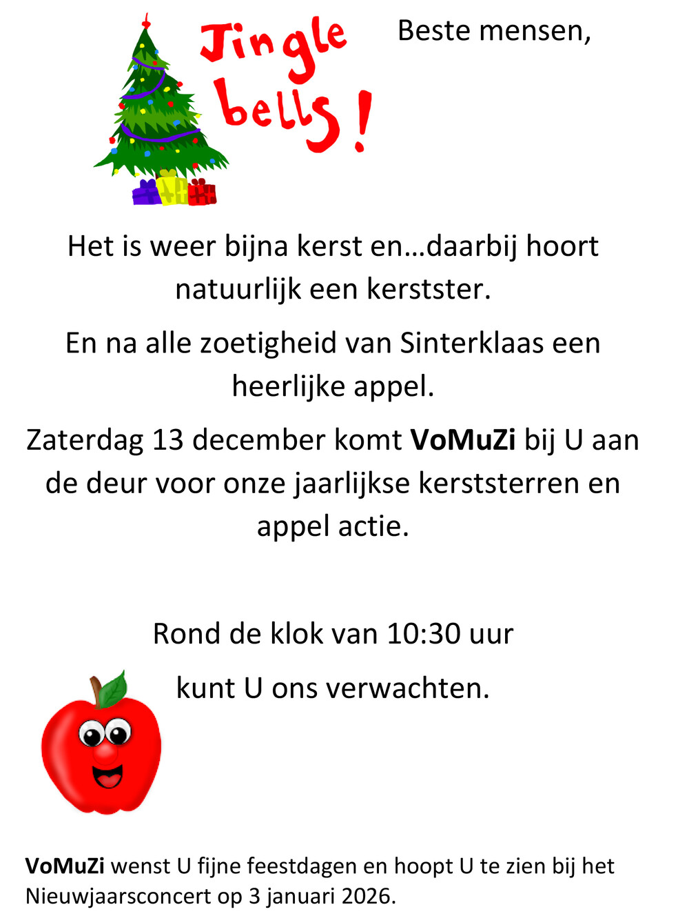 - 27-11-2025 Zaterdag 13 december: Kerststerren- en appelactie VoMuZi