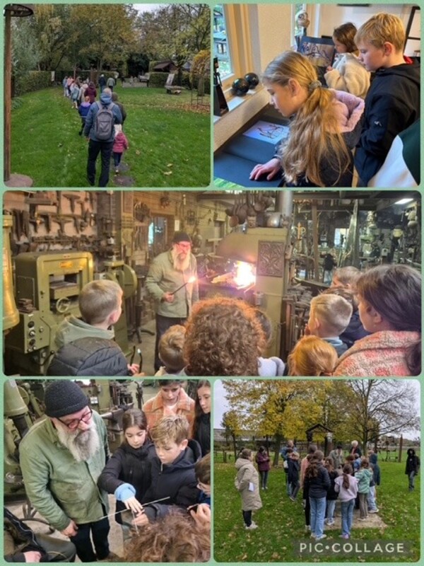 Op 3 november gingen wij met de hele bovenbouw naar Juul Baltussen. Juul is iemand die dingen van ijzer maakt, van kanonnen tot draken. Wij hebben eerst met de klas door de beeldentuin gelopen, dat was super mooi allemaal. Er waren mini stoeltjes waar sommigen in pasten maar Julius bleef er in vast zitten maar kwam er gelukkig wel weer uit. Daarna hebben we een kijkje genomen in zijn werkplaats. Toen hebben wij het kunstwerk gezien wat Juul aan het maken is voor Vortum. Eenmaal uitgekeken heeft Juul ons laten zien hoe hij een staaf ijzer omsmelt tot een staf met een knoop erin. Dat vonden we allemaal erg cool en hebben daarna zelf iets mogen maken, namelijk een soort ijzervlecht. We zijn nog in het museum van Juul geweest en toen gingen we naar huis. We kregen ook nog 2 kaartjes mee en hebben er erg van genoten. We hebben Juul ook nog een bedankje gegeven.
